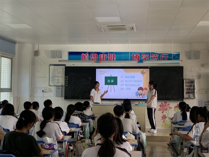在主題班會(huì)課上,班主任們貼近實(shí)事熱點(diǎn),以圖文并茂的方式,向同學(xué)們講解了偶像與明星的區(qū)別,使同學(xué)們正確認(rèn)識(shí)到什么才是真正的偶像。班主任們還分享了許多中華民族英雄的光輝事跡和感人故事,如新冠疫情期間奮戰(zhàn)在最前線的醫(yī)務(wù)工作者、東京奧運(yùn)會(huì)上為國爭光的中國運(yùn)動(dòng)健兒,以及在科技領(lǐng)域潛心研究、做出重大貢獻(xiàn)的科學(xué)家們,引導(dǎo)學(xué)生多關(guān)注、多學(xué)習(xí)這些民族偶像,學(xué)習(xí)他們身上所擁有的濃厚的家國情懷、堅(jiān)定的理想信念以及優(yōu)秀的人格品質(zhì),讓學(xué)生謹(jǐn)記要摒棄網(wǎng)絡(luò)上缺乏理性和盲目無知的追星行為,樹立正確的人生觀、價(jià)值觀、世界觀,積極向理性正面、積極向上的偶像崇拜主流思想靠攏。最后,班主任們帶領(lǐng)學(xué)生進(jìn)行“尋找身邊的偶像”活動(dòng),讓學(xué)生明白偶像并非遙不可及、遠(yuǎn)在天邊,只要善于發(fā)現(xiàn),就可以在身邊尋找到值得學(xué)習(xí)的偶像;并且通過自身的不斷努力、提高修養(yǎng),自己也能成為他人的偶像。