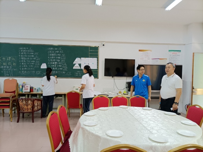 接下來,參觀了學(xué)校的電子商務(wù)創(chuàng)業(yè)園、電商網(wǎng)絡(luò)直播、旅游西點(diǎn)工作室,了解酒店管理專業(yè)學(xué)生備賽市技能競賽情況后,陳建國教研員和胡訓(xùn)華副校長等教務(wù)線行政人員,圍繞專業(yè)技能人才培養(yǎng)與社會(huì)服務(wù)、崗位專業(yè)開發(fā)與課程體系建設(shè)、師生技能競賽、人才管理與理念創(chuàng)新等校企合作熱點(diǎn)難點(diǎn)問題,進(jìn)行了熱烈而有益的探討和交流。