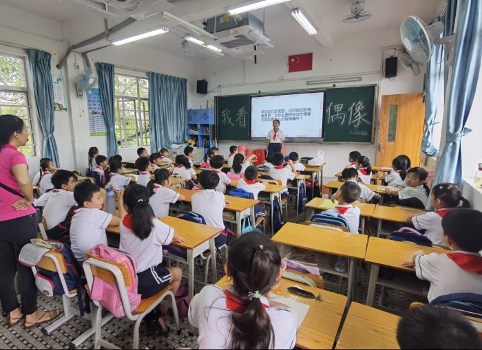 青少年時期是人們形成世界觀、人生觀和價值觀的重要階段,偶像崇拜是當今青少年精神生活的一部分,是成長的必經(jīng)之路,是社會化的重要歷程。為了科學地引領(lǐng)幫助孩子們樹立正確的偶像觀,發(fā)揮偶像們的激勵作用。9月27日,石岐實驗小學對全校同學進行了“我看偶像”主題班隊活動。
