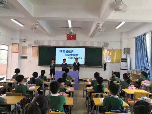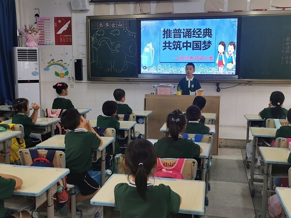 9月13日至19日是第24屆全國(guó)推普周。本屆推普周的主題是“普通話誦百年偉業(yè),規(guī)范字寫時(shí)代新篇”。為大力弘揚(yáng)中華優(yōu)秀傳統(tǒng)文化,進(jìn)一步增強(qiáng)師生的語(yǔ)言文字規(guī)范意識(shí),五桂山學(xué)校開展了“推廣普通話學(xué)習(xí)”系列活動(dòng)。
