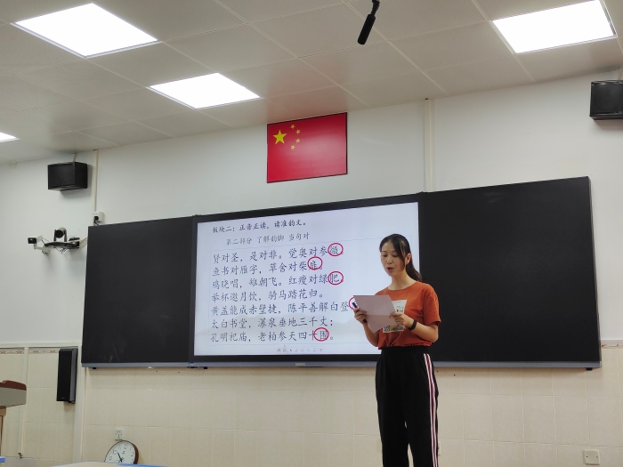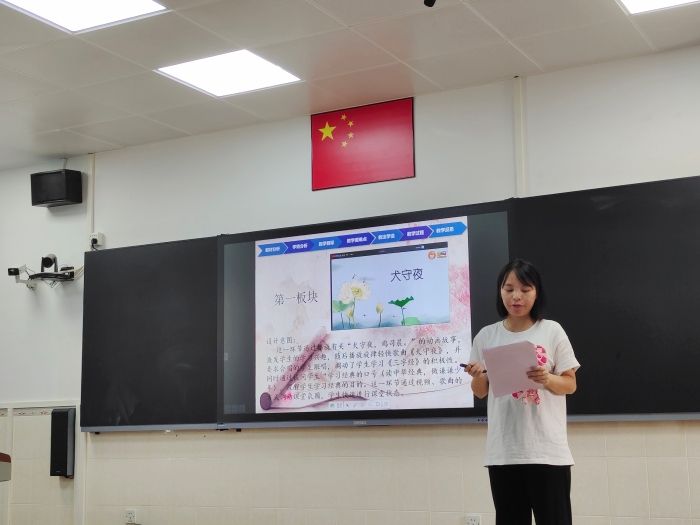 16日,組內(nèi)初賽如期舉行。13節(jié)課,13種風(fēng)格;13位青年教師,13種看家本領(lǐng)。授課內(nèi)容均選自國學(xué)啟蒙、經(jīng)典詩詞等中華優(yōu)秀傳統(tǒng)文化。有的老師運(yùn)用視頻、圖片等多媒體手段,帶領(lǐng)學(xué)生走進(jìn)詩詞,感受詩詞的韻味;有的老師深挖文本,由朗讀到吟誦再到配樂吟詠,由淺入深,引導(dǎo)學(xué)生讀中悟,體會(huì)詩人的心境;有的老師從實(shí)際出發(fā),提舉生活實(shí)例,讓學(xué)生在生活中接受傳統(tǒng)文化的熏陶,讓傳統(tǒng)美德如春風(fēng)潤物細(xì)無聲般地浸潤孩子的心田。執(zhí)教的老師扎實(shí)的課堂基本功、豐厚的文化底蘊(yùn)以及靈動(dòng)的課堂設(shè)計(jì)讓人印象深刻,課堂效果可謂精彩紛呈。