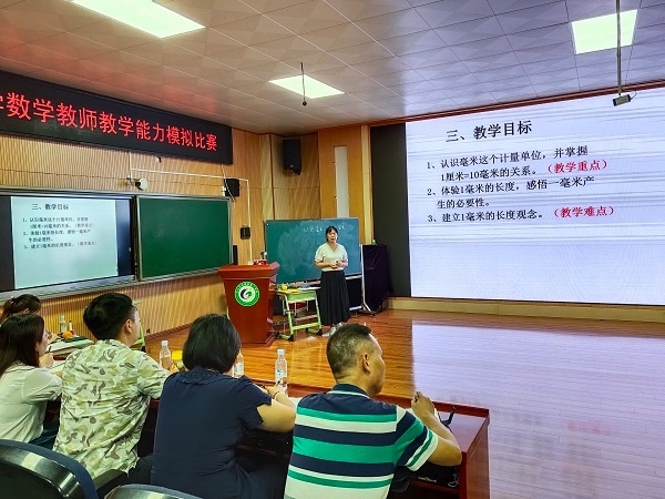 為提升教師數(shù)學(xué)專業(yè)水平,夯實(shí)教師的教學(xué)技能,加強(qiáng)教師教學(xué)能力,為中山市小學(xué)數(shù)學(xué)教學(xué)能力大賽做足準(zhǔn)備。2021年9月22日,在曹二小學(xué)階梯室開(kāi)展了古鎮(zhèn)鎮(zhèn)小學(xué)數(shù)學(xué)教師教學(xué)能力模擬比賽。古鎮(zhèn)鎮(zhèn)教體中心督學(xué)陳和添、鎮(zhèn)中心教研組長(zhǎng)許琰主任出席指導(dǎo)本次活動(dòng),古鎮(zhèn)各個(gè)學(xué)校的數(shù)學(xué)科組長(zhǎng)擔(dān)任本次比賽評(píng)委,曹二小學(xué)全體數(shù)學(xué)老師均參與本次活動(dòng)。