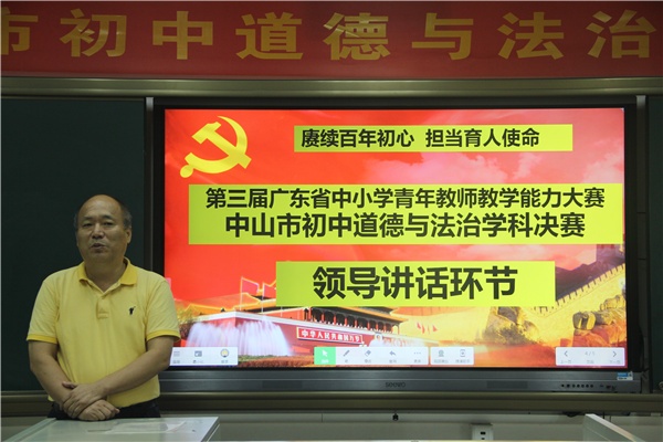 為推動初中道德與法治課程教學改革,進一步提高道德與法治教師業(yè)務水平,加強思政課教師隊伍建設,第三屆廣東省中小學青年教師教學能力大賽中山市初中道德與法治學科決賽于2021年9月16日—17日在溪角中學如期舉行。中山市教育教學研究室何晉中主任、中山市教體局秘書科譚燕燕科長、中山市教育教學研究室夏建軍老師、沙溪鎮(zhèn)教體文旅局局長貝鵬程、沙溪鎮(zhèn)教育和體育事務中心寧云志主任蒞臨現場。